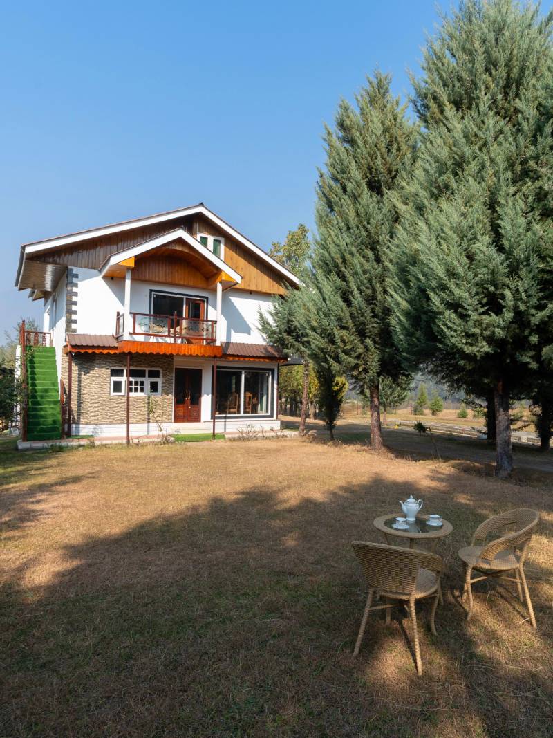 Khwab Villa in Preng, Kangan, Ganderbal district is a luxurious retreat surrounded by mountains and lush gardens. With five elegant rooms, a bonfire area, BBQ, board games, and a cozy library, it offers the perfect blend of comfort, nature, and relaxation.